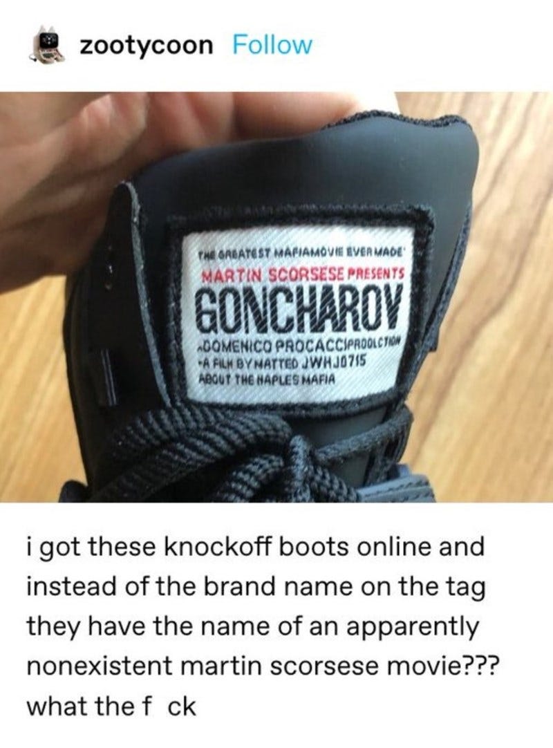 In 2020, Tumblr user zootycoon posted a photo of boots with a bizarre misprinted tag: