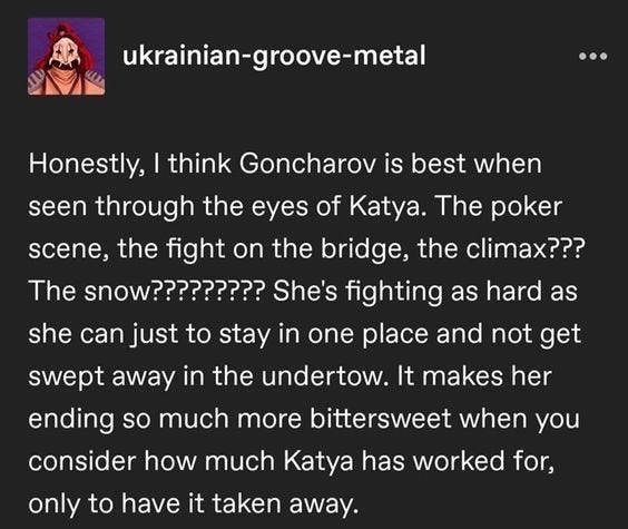 And in true Tumblr fashion, the fac community also created a massive “Goncharov soundtrack masterpost.”