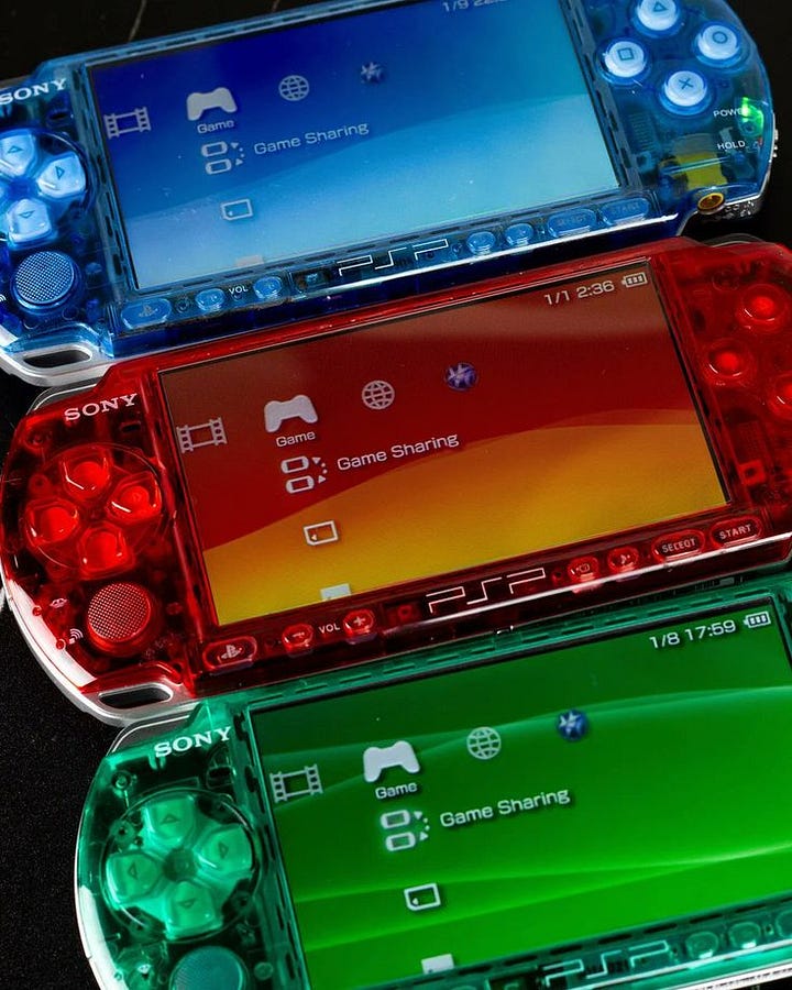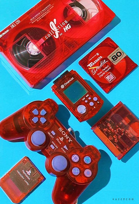 The translucent PSP shells in red, blue, and green. The Rock Candy Xbox controllers where you could watch the entire circuit board light up under your fingers. The PlayStation Memory Cards in every color of the spectrum — teal, yellow, orange, red — each one showing you its insides.