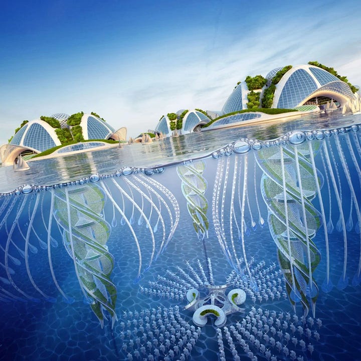 Frutiger Eco was the one that actually cared about the planet. Same glossy optimism, but pointed squarely at nature and sustainability — wind turbines bathed in golden light, green cities of the future, architecture that looked like it had grown out of the earth rather than been dropped on it. It was Frutiger Aero with a manifesto. The aesthetic of every mid-2000s renewable energy ad that made you genuinely believe clean power was two years away. It wasn’t. But it looked incredible.