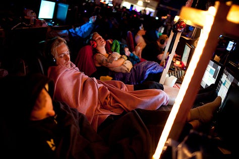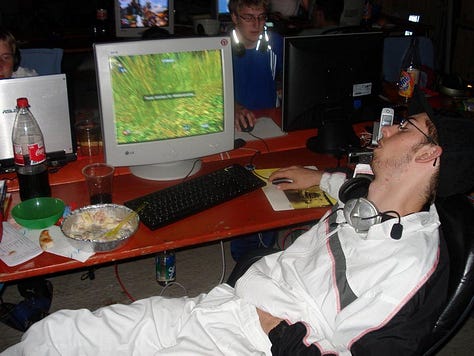 Games like Counter-Strike, Warcraft III, or Quake weren’t just played, they were experienced collectively. You could hear everything twice: once through your headphones and once again, slightly delayed, from the person next to you yelling at the exact same moment. Trash talk was immediate. Wins felt louder. Losses felt public.