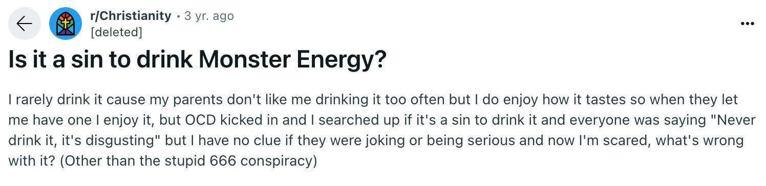 But in 2014, a viral conspiracy theory took hold, convincing a surprising number of people (mostly boomers) that Monster Energy wasn’t just an edgy brand - it was a secret Satanic plot to corrupt the youth.