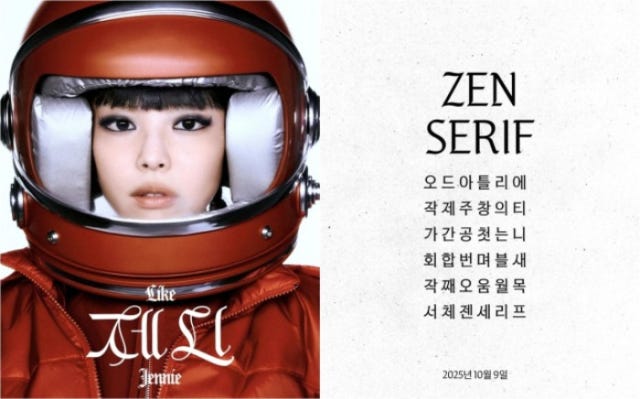 As a perfect counter-point to the closed-wall corporate drama, November also saw a major âcreator-ledâ font release. Jennie of the K-Pop group Blackpink released âZen Serifâ. The artifact itself is notable: it is a high-quality, free-to-download typeface, primarily for Hangeul (Korean) but including a âsurprisingly niceâ and robust Latin character set designed by Leo Type.