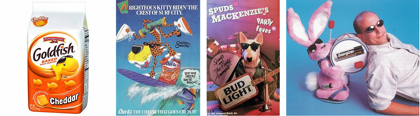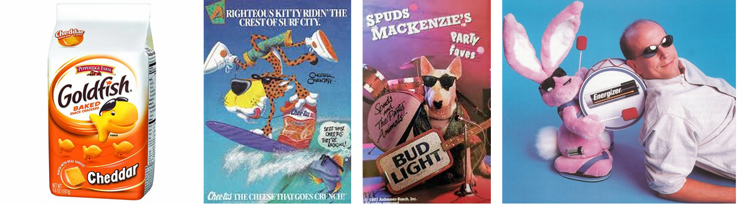 Anthropomorphism did the rest. Animals grab attention, feel friendly, and stick in memory; sunglasses stamped them with attitude. Thatâs how we got Spuds MacKenzieâs party-dog myth and Chester Cheetahâs too-cool-for-school persona. Brands chasing youth audiences loved the formula: fun, a bit naughty, endlessly merchable.