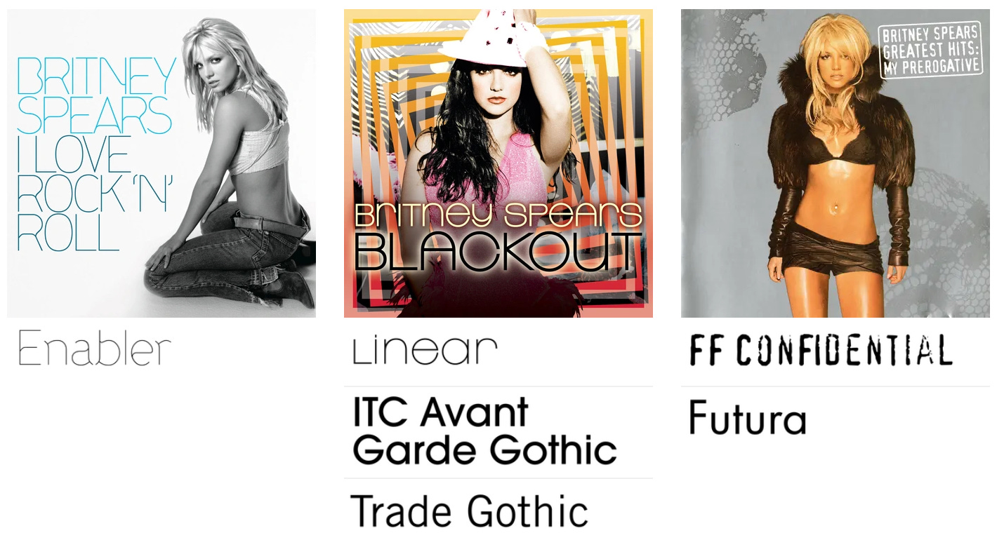 For years, these album covers, posters and press images felt iconic but oddly anonymous — vibes without credits. Fonts In Use does the detective work, tracing the actual typefaces behind pop culture’s biggest moments, from Britney Spears’ early-2000s era to other chart-dominating visuals. It’s a reminder that pop history isn’t just sound and spectacle — it’s also letterforms, layout decisions, and designers quietly shaping how fame looks.