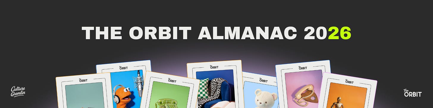 Trying to make sense of the internet, design, and culture in 2026? Same. That’s why we made The Orbit Almanac—part trend report, part cultural weather forecast. Get it here.