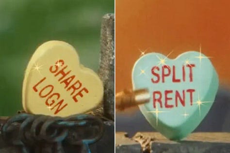 Anti-Valentine’s marketing that admits nothing is more romantic than splitting the rent.