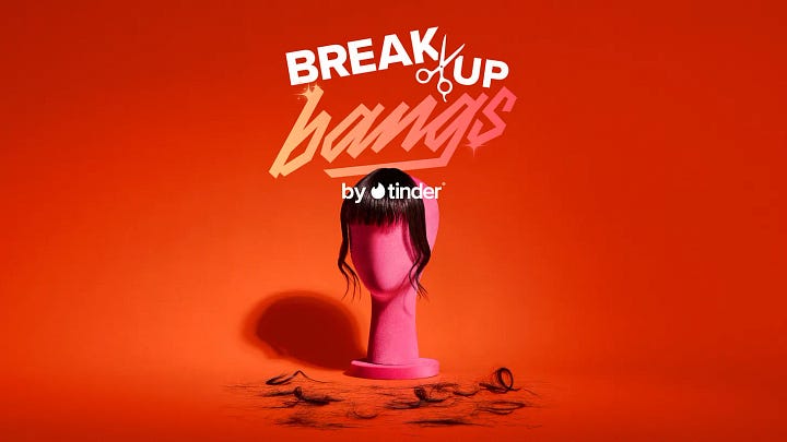 💚 Tinder: The “Breakup Bangs” Campaign Tinder closed out 2025 with a campaign that screams Anti-Valentines Day: “Breakup Bangs.” Breakups usually come with a need for radical change. Often, this tends to take the form of a very specific haircut: Bangs.
