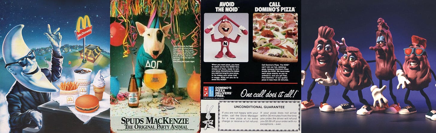 The 1980s was a golden age of fast-food mascots - equal parts marketing genius and fever dream. From Domino’s claymation villain The Noid to McDonald’s moon-headed lounge singer Mac Tonight, brands weren’t just selling food - they were searing strange characters into our childhood brains. Claymation bands from California Raisins terrified and delighted in equal measure, while Bud Light’s party-dog Spuds MacKenzie somehow became a cultural icon. These mascots weren’t just memorable - they were deeply weird.