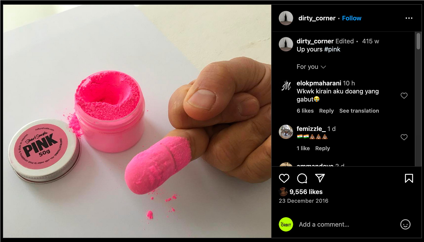 The feud intensified when Kapoor obtained the “Pinkest Pink” and posted an image of his middle finger dipped in the pigment.