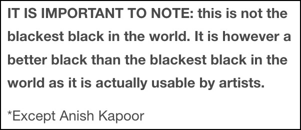 Angered about Kapoor putting his hands on his pinkest pink, Sample retaliated again, and this time by creating his own super-black paint, available to everyone... except Anish Kapoor. He even included a legal disclaimer: